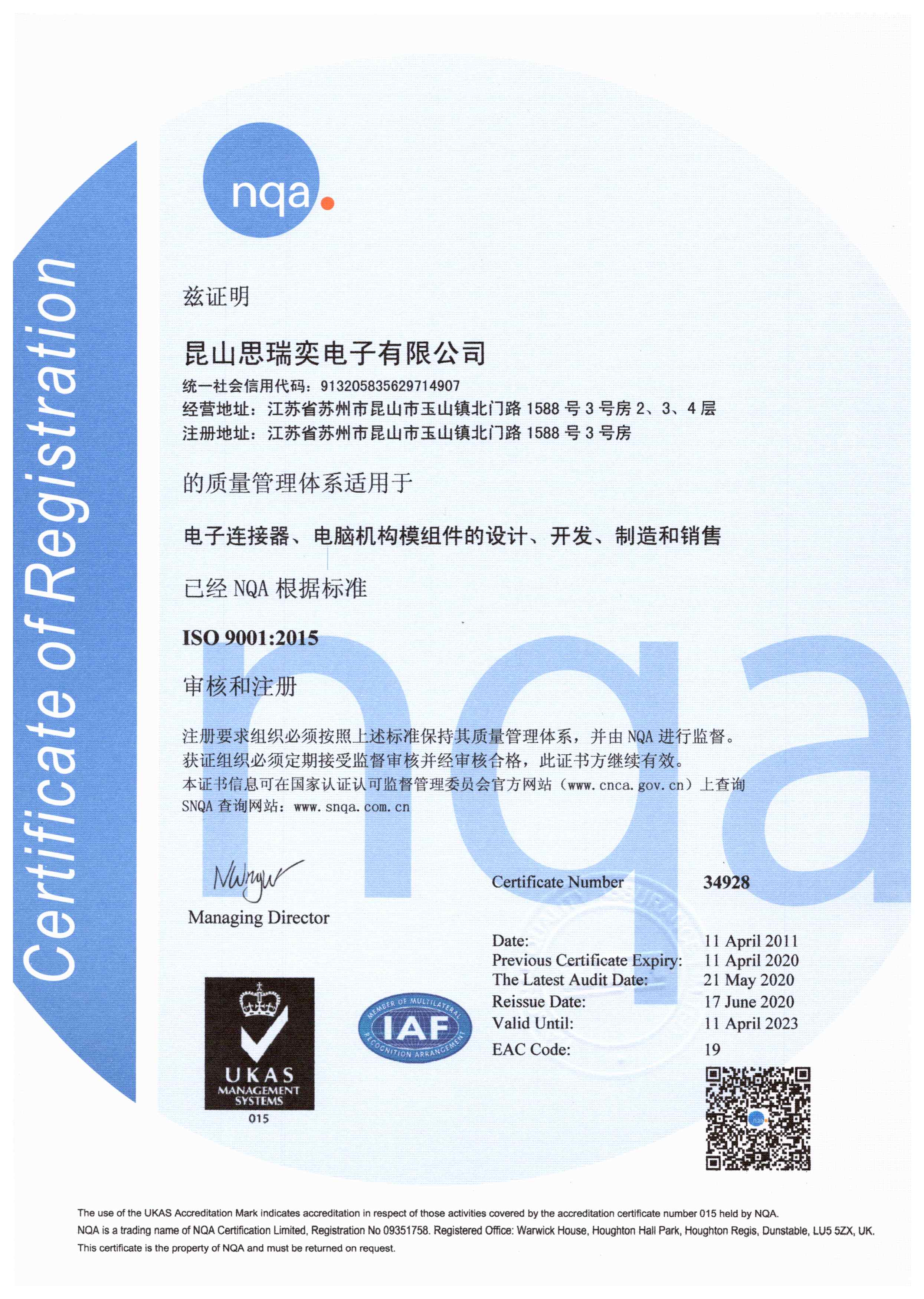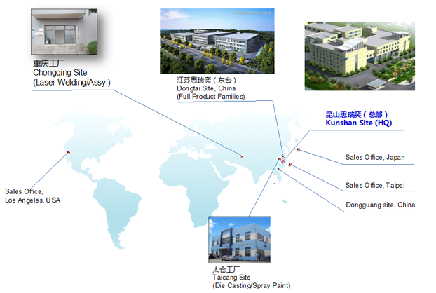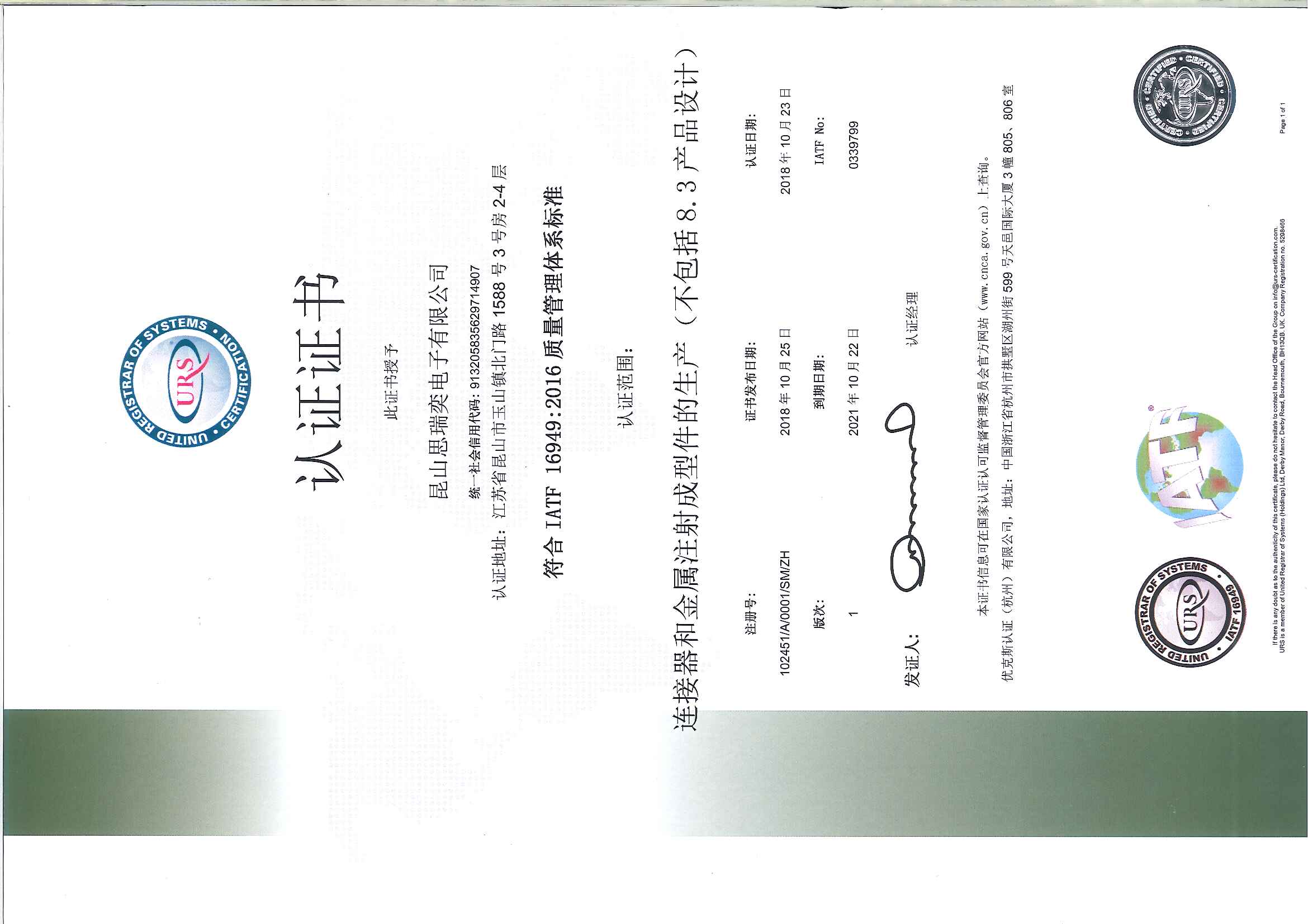 思瑞奕電子有限公司成立于2010年10月,注冊資金7500萬(wàn)人民幣,總部位于江蘇省昆山市,在重慶、江蘇東臺、江蘇太倉設有分廠(chǎng),公司于2011年通過(guò)ISO9001/ISO14001認證,2013年通過(guò)高新技術(shù)企業(yè)和TS16949(IATF)體系認定,2016年先后通過(guò)知識產(chǎn)權管理體系認證、安全生產(chǎn)標準化認證,2017年獲頒江蘇省民營(yíng)科技企業(yè)、2018年先后獲得蘇州市人民政府認定企業(yè)技術(shù)中心、科技部認定中小型科技企業(yè)、江蘇省最具成長(cháng)性高科技企業(yè)、2020年獲得江蘇省人民政府認定企業(yè)技術(shù)中心等榮譽(yù)稱(chēng)號......