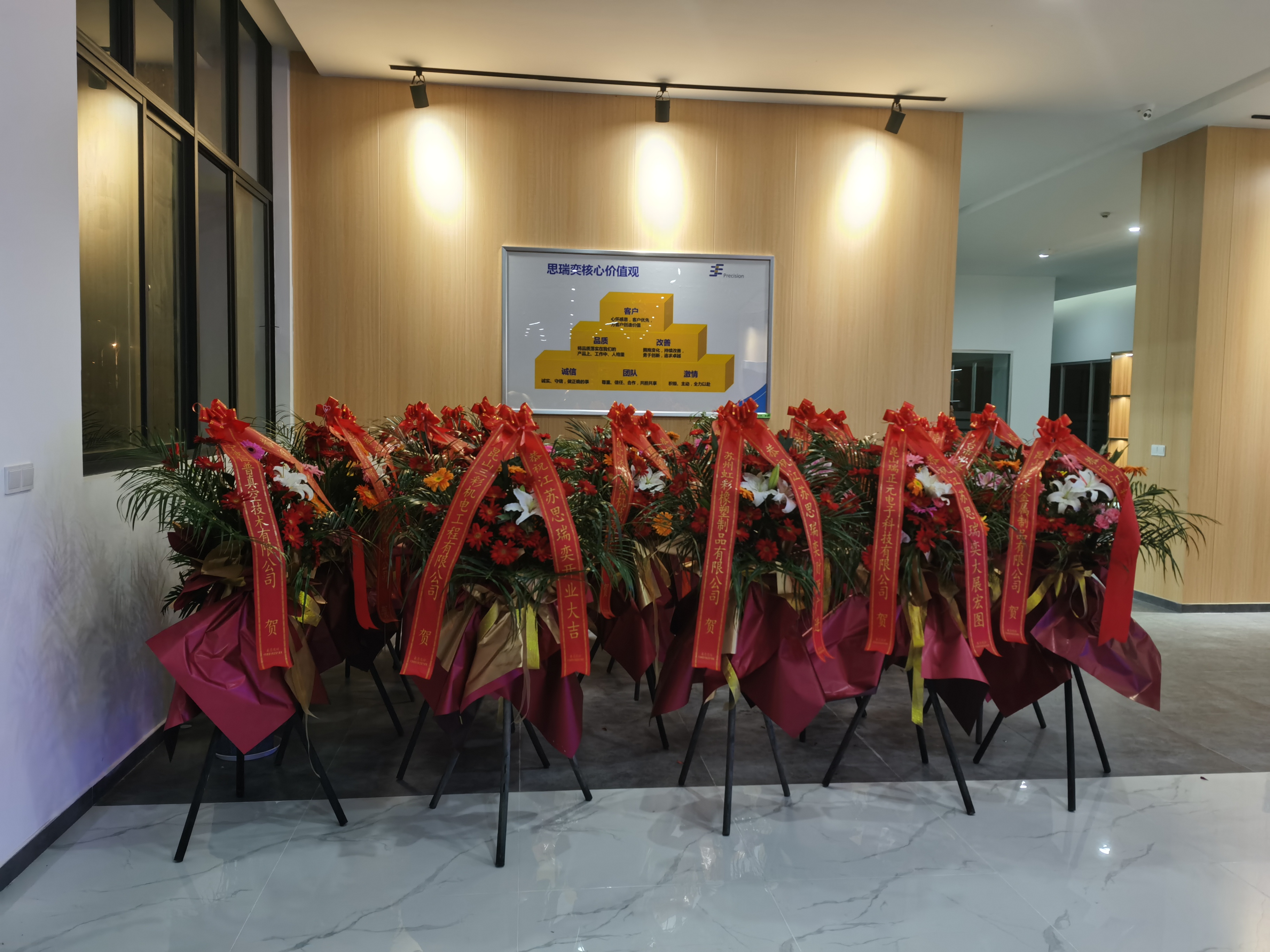 一排排鮮艷的花籃襯托出節日般的喜慶,一條條彩帶從樓頂傾瀉而下,帶著(zhù)各界朋友的濃厚情誼,預示著(zhù)思瑞奕必有色彩絢爛的未來(lái)之路。