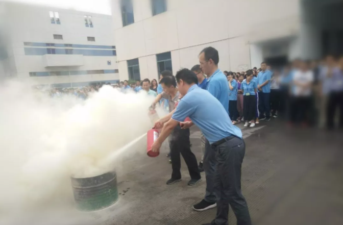 然后,各部門(mén)負責人以身作則,演習使用了滅火設備。